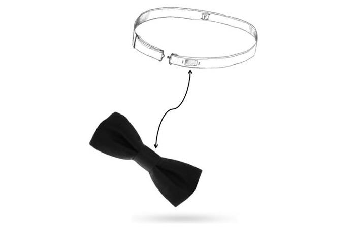 Vendu dans un joli coffret Maison F blanc et noir. Il se compose d’un tour de cou réglable et d’un nœud à clipper.