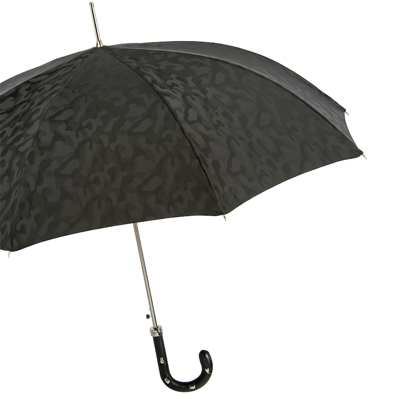 Parapluie à ouverture automatique réalisé en toile noire mat motif camouflage,