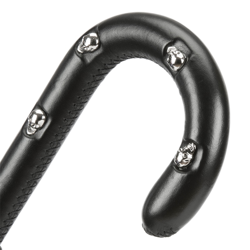 poignée cuir noir incrustée de têtes de mort.