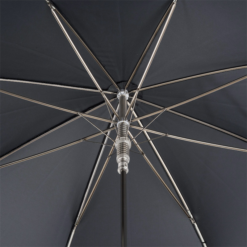 Nous avons choisi pour ce modèle une toile noire mat afin de laisser tout le rendu de la tête de mort s’exprimer. La tête de mort réalisée en résine plaquée argent est du plus bel effet que vous ayez un look « rock » ou « dandy ». Avec un diamètre en position « ouvert » de 110 cm vous pourrez en toute commodité vous promener à deux sous ce parapluie rock et chic