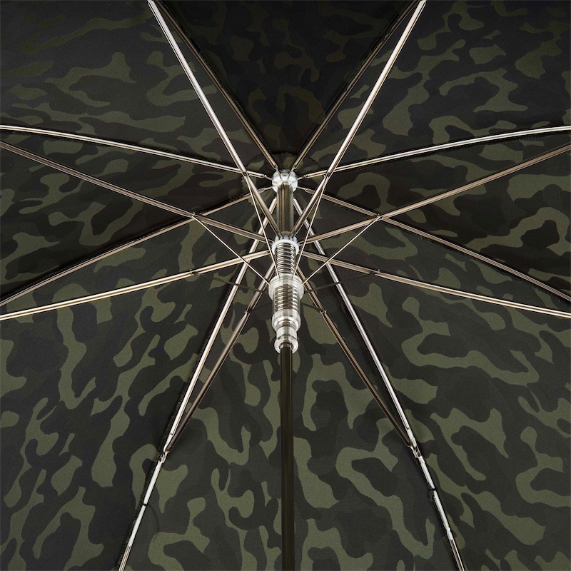 Nous avons choisi pour ce modèle une toile kaki motif camouflage afin de renforcer le look travaillé de ce parapluie. La poignée tête de mort plaquée argent est du plus bel effet que vous ayez un look « rock » ou « dandy ». Avec un diamètre en position « ouvert » de 110 cm vous pourrez en toute commodité vous promener à deux sous ce parapluie rock et chic