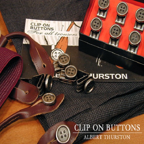 Cette paire peut être portée sur un pantalon à boutons ou avec les boutons à clipser de la maison Albert Thurston. Chez Revenge Hom nous avons fait le choix des vraies bretelles de dandy donc pas de pince à clipser mais des attaches en cuir
