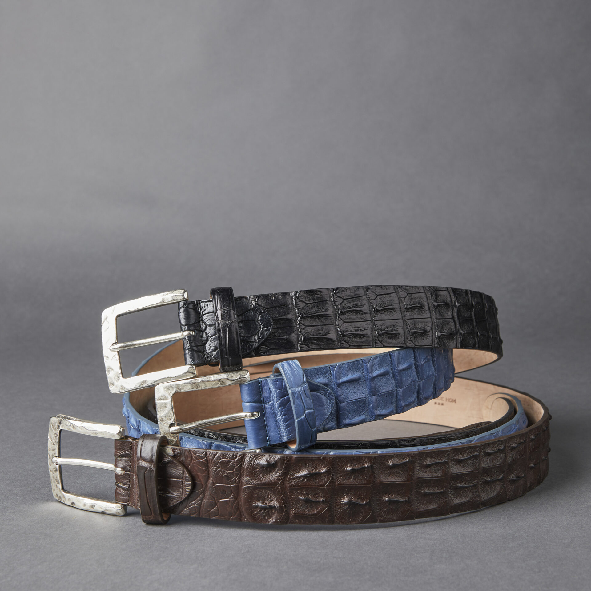 Ceinture en croco, doublée de cuir nubuck et fabriquée à la main en Italie pour Revenge Hom.