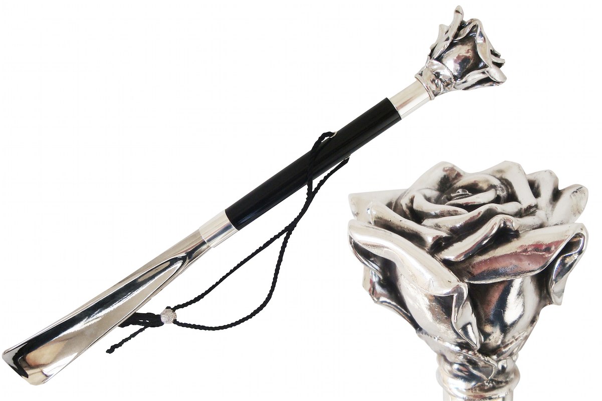 Nous vous proposons un chausse-pied avec un pommeau en forme de tête de rose. Ce n’est pas un simple chausse-pied mais une pièce essentielle de votre vestibule. Elégant et raffiné, il joint l’utile au plaisir des yeux.