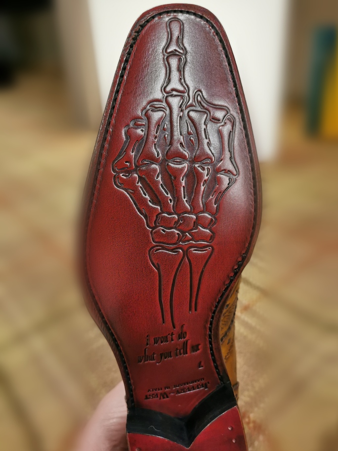 Enfin, vous y retrouverez tous les détails inhérents à la marque Jeffery West comme l’intérieur rouge et l’inscription subversive cachée sous la semelle.