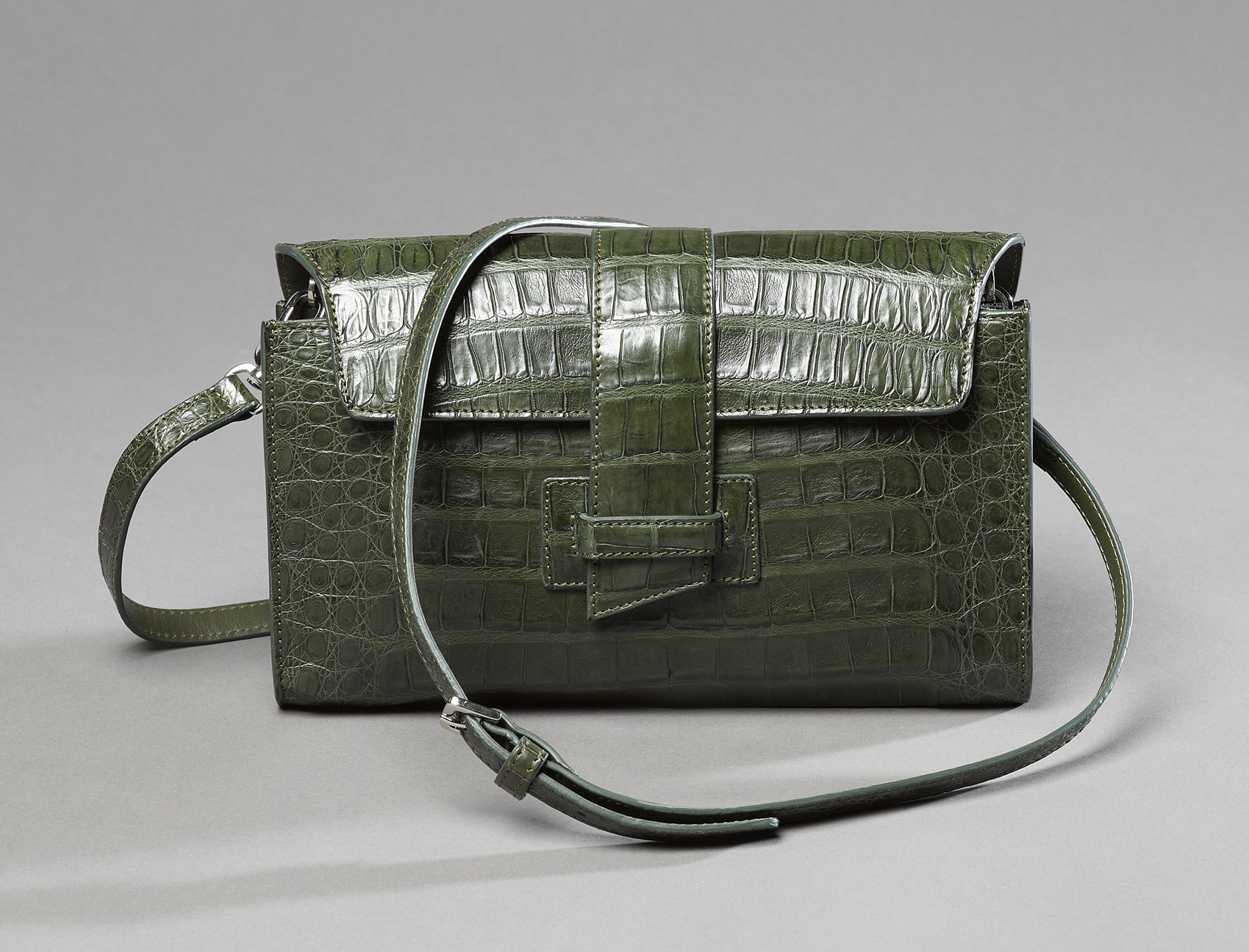 C’est une pochette tout à fait exceptionnelle que vous propose Revenge Hom, une pièce unique réalisée à la main entièrement en cuir de crocodile dans un superbe kaki.