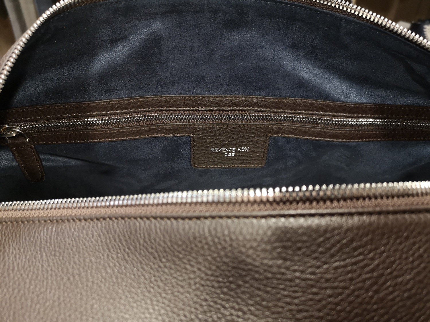 J’ai choisi une doublure en velours marron foncé. Toutes les finitions intérieures sont en cuir marron foncé. Poche zippée pour les papiers et portefeuille ainsi qu’une grande poche Ipad.